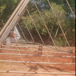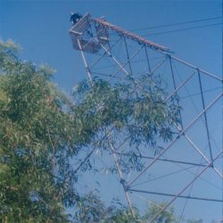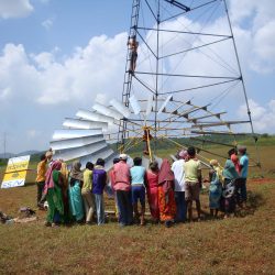 The Auroville Windpumps are horizontal axis, multi-directional metal blade windmills with rotor diameter of 5.7metres or 4.5metres. The windmills are mounted on free standing tripod towers made out of tubes available in different heights from 9 metres to 23 metres.